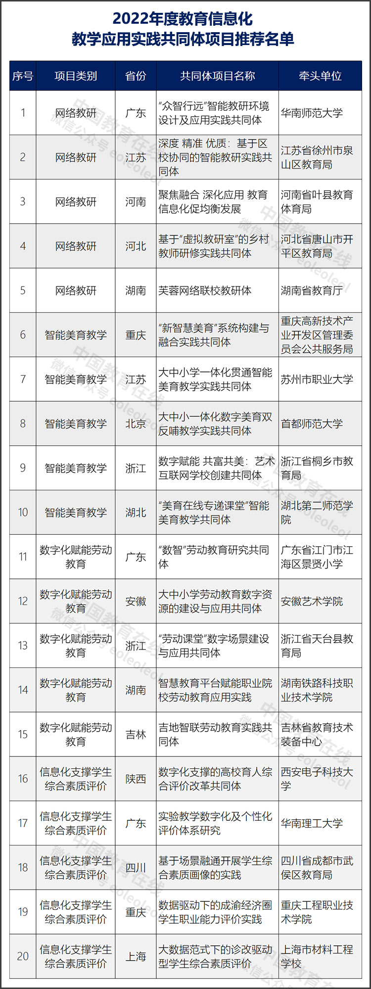 關(guān)于2022年度教育信息化教學(xué)應(yīng)用實(shí)踐共同體項(xiàng)目名單的公示