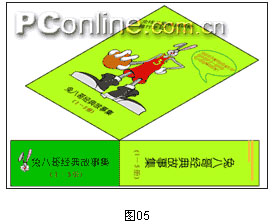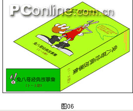 4.下面就要看你的了,為包裝盒添加圖案,文字。(由于本篇不牽涉到構(gòu)圖,所以,這里的例子只是一個(gè)簡單的表示,有不當(dāng)之處大家多海函吧?。▓D04)如果你的圖中有文字部分,記得要為文字創(chuàng)建輪廓,否則導(dǎo)到別的軟件里時(shí)會(huì)慘不忍睹。將你的設(shè)計(jì)圖按塊分別與我們剛創(chuàng)建的三個(gè)矩形組合。