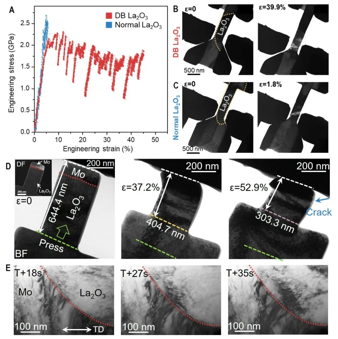 具有有序界面結(jié)構(gòu)的La2O3陶瓷可成功從金屬中“借”位錯,并成功實(shí)現(xiàn)陶瓷的拉伸和彎曲變形
