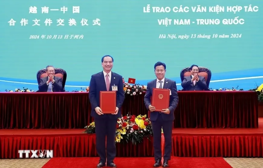 10月13日,在兩國領(lǐng)導(dǎo)人共同見證下,北京大學(xué)校長龔旗煌與越南河內(nèi)國家大學(xué)校長黎君交換《北京大學(xué)-越南河內(nèi)國家大學(xué)諒解備忘錄》。