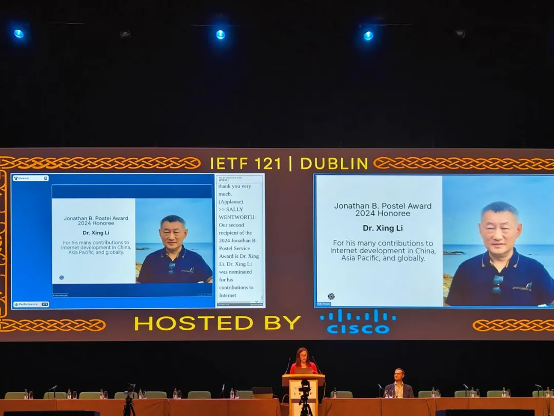 當(dāng)?shù)貢r間11月6日,在愛爾蘭都柏林舉行的第121屆 IETF大會上,國際互聯(lián)網(wǎng)協(xié)會將2024年度喬納森·波斯塔爾獎(Jonathan Postel Award)授予清華大學(xué)李星教授,以表彰他為全球互聯(lián)網(wǎng)技術(shù)發(fā)展作出的杰出貢獻(xiàn)。