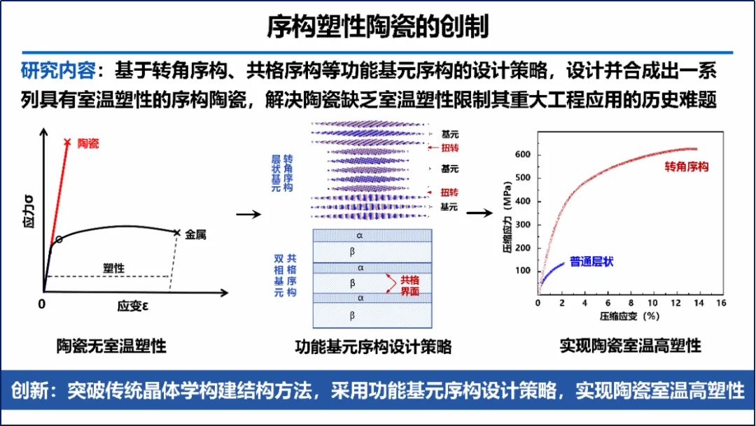 陶瓷具有輕質(zhì)、高強、耐高溫、耐磨損等優(yōu)異性能,但韌性較差,且在室溫或低溫下缺乏塑性,容易發(fā)生脆性斷裂,這成為其工程應(yīng)用的致命弱點。實現(xiàn)陶瓷在室(低)溫下的塑性這一重大科學目標仍然面臨巨大挑戰(zhàn)。