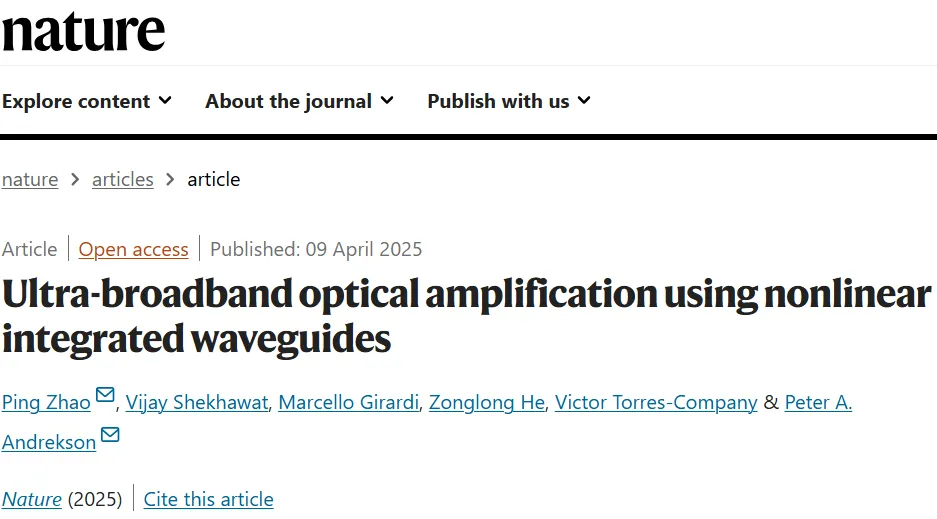 近日,四川大學(xué)電子信息學(xué)院趙平團(tuán)隊聯(lián)合瑞典查爾姆斯理工大學(xué)Peter Andrekson教授團(tuán)隊,在光放大器制備領(lǐng)域取得重要進(jìn)展。相關(guān)研究以Ultra-broadband optical amplification using nonlinear integrated waveguides為題發(fā)表于Nature。四川大學(xué)趙平研究員為論文第一作者。