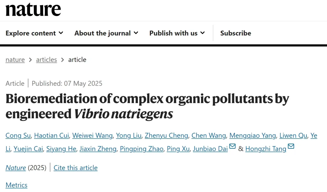 近日,上海交通大學生命科學技術學院、微生物代謝全國重點實驗室唐鴻志團隊與中國科學院深圳先進技術研究院/中國農(nóng)業(yè)科學院深圳農(nóng)業(yè)基因組研究所(嶺南現(xiàn)代農(nóng)業(yè)科學與技術廣東省實驗室深圳分中心)戴俊彪團隊合作,在環(huán)境微生物技術研究方面取得進展,用合成生物學方法構建的需鈉弧菌工程菌株能在高鹽工業(yè)廢水和高鹽土壤中同時降解多種有機污染物。該項研究為解決石化廢水排污、海洋石油泄漏等全球性環(huán)境問題提供了全新的技術方案。相關研究成果以“Bioremediation of complex organic pollutants by engineered Vibrio natriegens”為題,于2025年5月7日在線發(fā)表在《自然》(Nature)上。