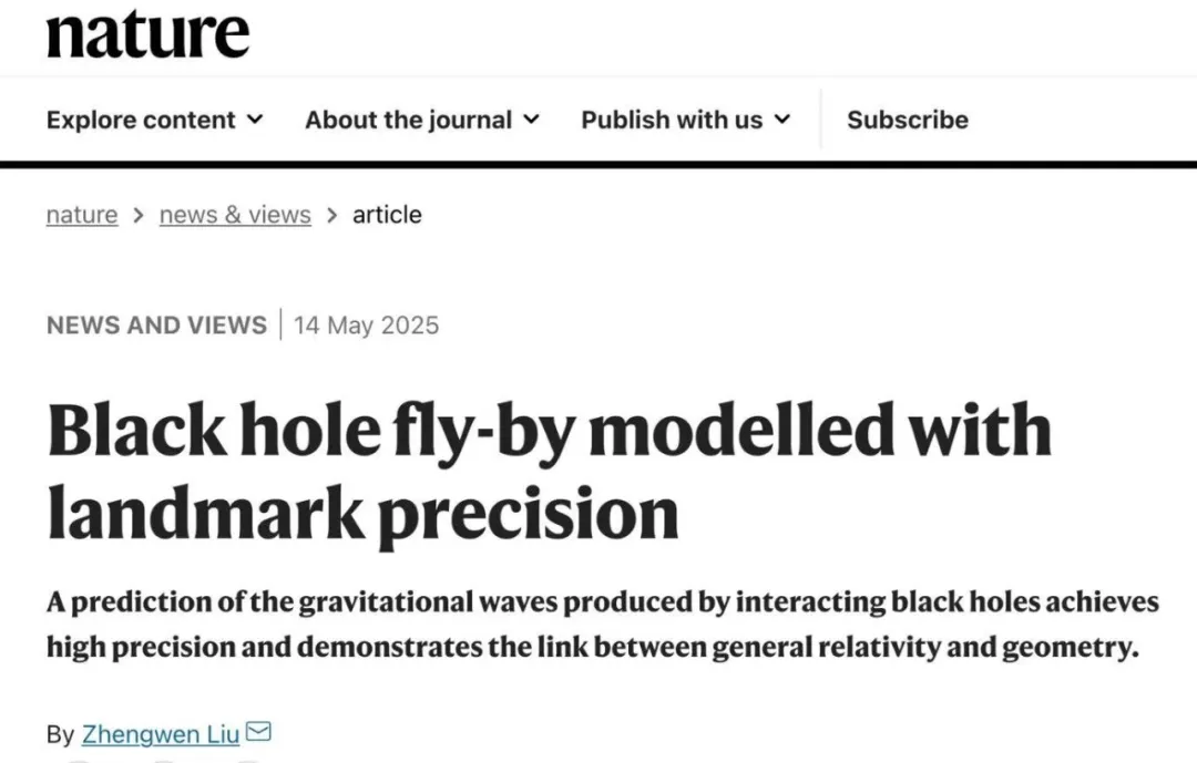 劉正文教授于2024年加盟東南大學(xué),依托物理學(xué)院與丘成桐中心開展新興的量子場論與引力波理論前沿交叉研究。News & Views是Nature雜志廣受歡迎欄目,通常邀請相關(guān)領(lǐng)域的前沿專家對最新的重大科學(xué)成果進(jìn)行權(quán)威評述。此次劉正文教授受邀發(fā)表評論文章,不僅是對他本人學(xué)術(shù)成就的高度認(rèn)可,也凸顯了東南大學(xué)團(tuán)隊(duì)在解析相對論與引力波研究領(lǐng)域的國際學(xué)術(shù)影響力。