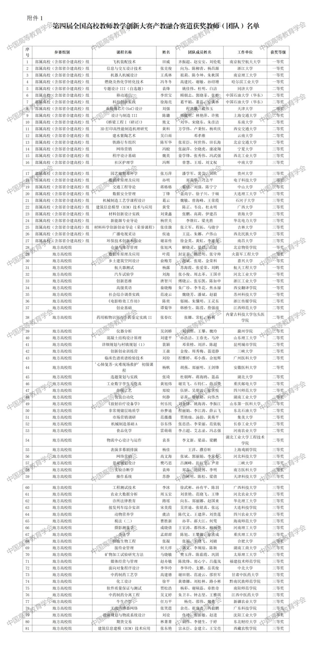 由教育部高等教育司指導(dǎo)、中國高等教育學(xué)會主辦的第四屆全國高校教師教學(xué)創(chuàng)新大賽產(chǎn)教融合賽道全國賽于11月11-14日在重慶舉辦。第四屆大賽產(chǎn)教融合賽道歷經(jīng)省賽、全國賽,經(jīng)專家評審,共有12個教師(團(tuán)隊)獲一等獎、28個教師(團(tuán)隊)獲二等獎、41個教師(團(tuán)隊)獲三等獎。現(xiàn)將獲獎名單予以公布,詳見附件。