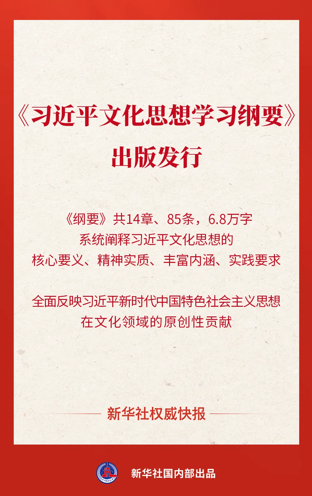 為深入學(xué)習(xí)習(xí)近平新時(shí)代中國(guó)特色社會(huì)主義思想,貫徹落實(shí)習(xí)近平文化思想,中央宣傳部組織編寫(xiě)《習(xí)近平文化思想學(xué)習(xí)綱要》(以下簡(jiǎn)稱《綱要》)一書(shū),已由學(xué)習(xí)出版社、人民出版社聯(lián)合出版,即日起在全國(guó)發(fā)行。