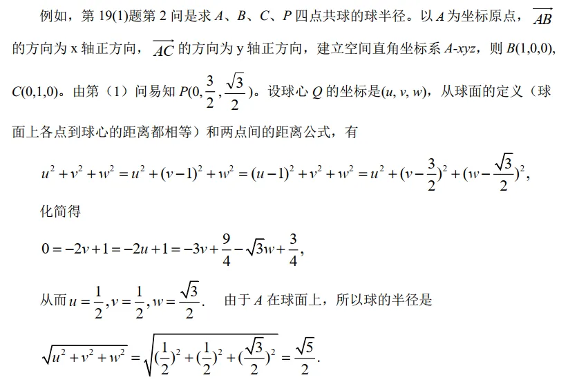 第18題考查橢圓的要素、橢圓與直線的位置關(guān)系,以及動(dòng)點(diǎn)的軌跡。第19題是關(guān)于立體幾何的,主要關(guān)心平面的位置關(guān)系和數(shù)量關(guān)系,需要一定的空間想象能力。第18(3)、19(2)題雖有一定的計(jì)算量,但都是常規(guī)的。