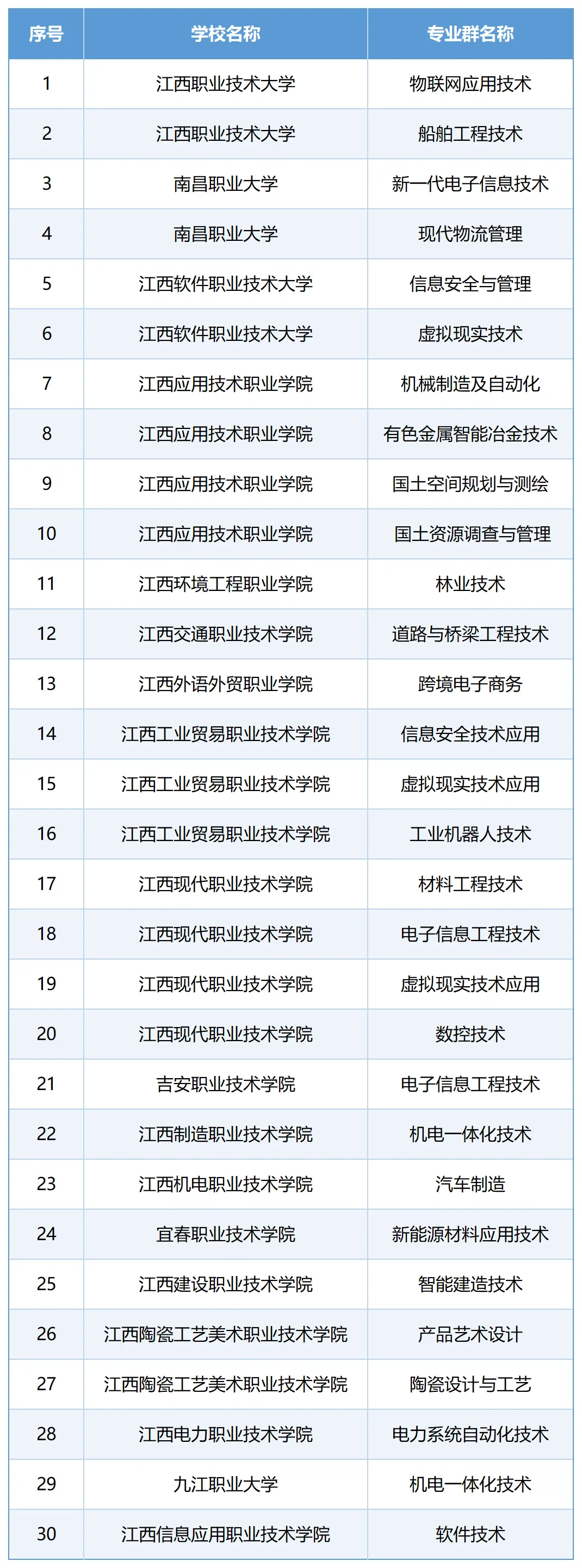 據(jù)《關(guān)于印發(fā)<江西省職業(yè)教育產(chǎn)教融合示范專業(yè)群建設(shè)標(biāo)準(zhǔn)>的通知》(贛教職成字〔2024〕8號(hào))要求,經(jīng)學(xué)校申報(bào)、業(yè)績公示、材料初審、實(shí)地考察等環(huán)節(jié),擬認(rèn)定江西職業(yè)技術(shù)大學(xué)物聯(lián)網(wǎng)應(yīng)用技術(shù)等30個(gè)專業(yè)群為江西省職業(yè)教育產(chǎn)教融合示范專業(yè)群,一起來看名單: