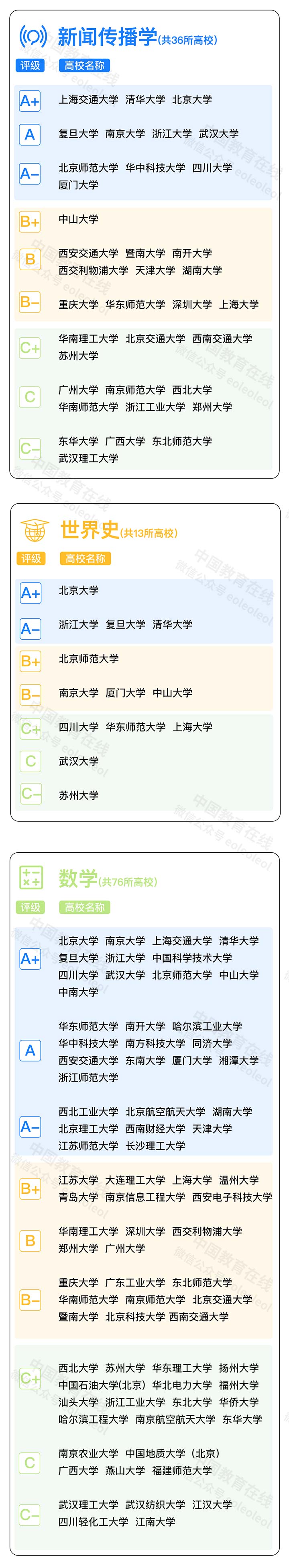 這些參與高校在每門學(xué)科中會(huì)獲得介于A+到C-之間的評級。