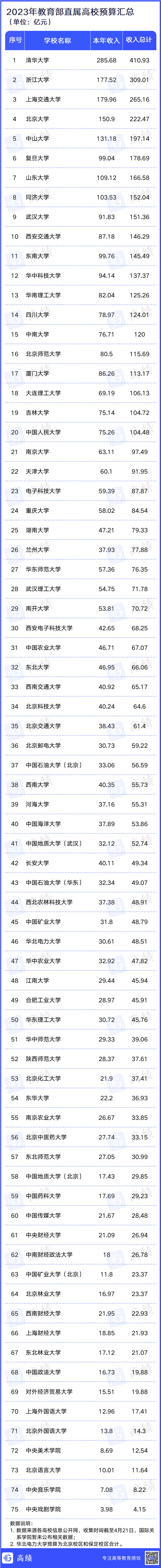 4月21日,除國(guó)際關(guān)系學(xué)院外,已有75所教育部直屬高校陸續(xù)在其信息公開網(wǎng)公布了2023年部門預(yù)算。