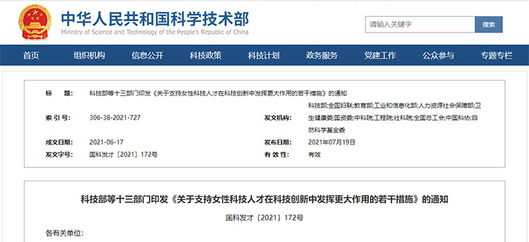 相關(guān)鏈接:科技部等十三部門印發(fā)《關(guān)于支持女性科技人才在科技創(chuàng)新中發(fā)揮更大作用的若干措施》的通知