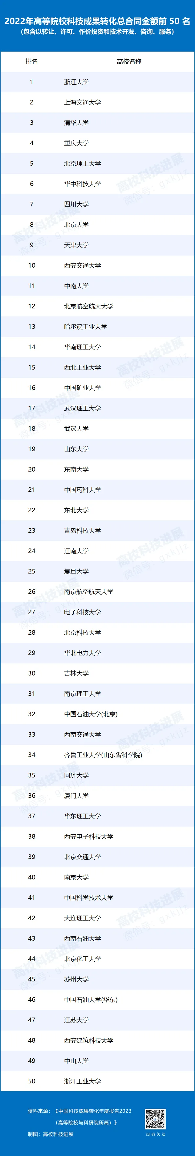 5所地方高校躋身2022年科技成果轉化Top50