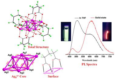 圖1全羧酸保護的具有罕見Ag8菱方體核心的超原子銀納米團簇