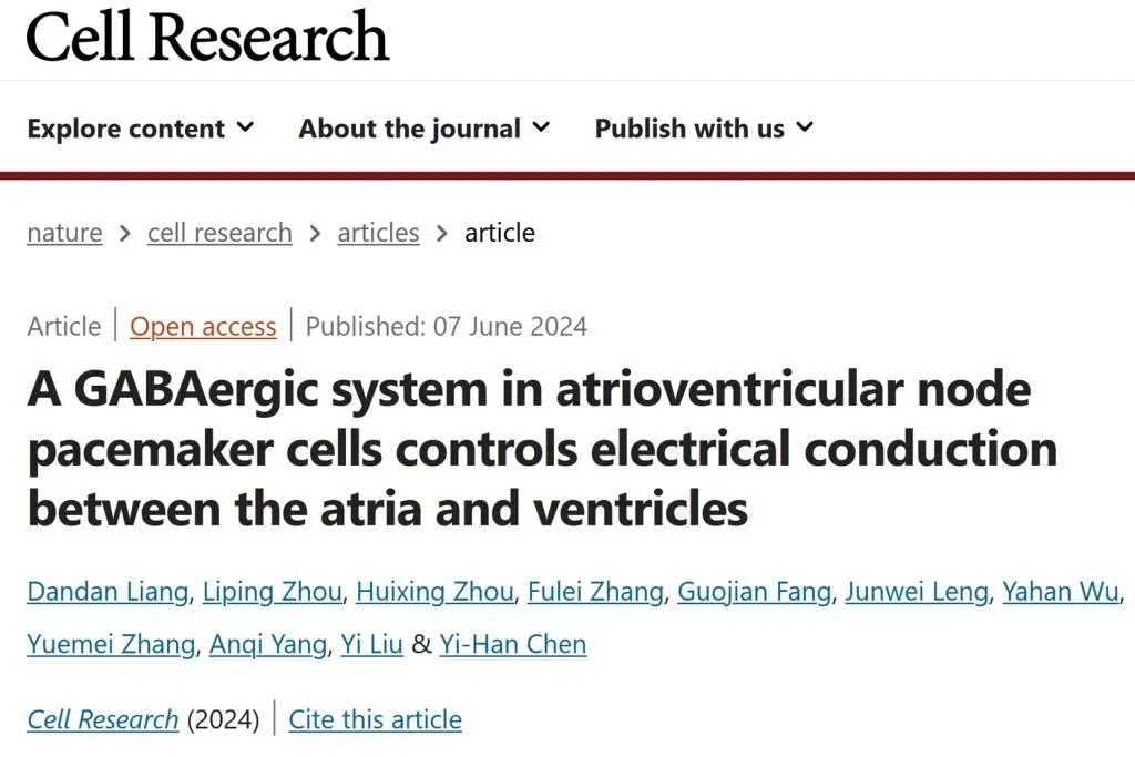 醫(yī)學(xué)院、附屬東方醫(yī)院心臟病全國(guó)重點(diǎn)實(shí)驗(yàn)室陳義漢院士團(tuán)隊(duì)在心臟中發(fā)現(xiàn)了γ-氨基丁酸(GABA)能系統(tǒng),該系統(tǒng)控制電信號(hào)從心房向心室的傳導(dǎo),促成心房和心室的有序收縮,維持正常的心臟搏動(dòng)和有效的血液循環(huán)。針對(duì)該系統(tǒng)的干預(yù)可以有效地預(yù)防和治療房室傳導(dǎo)阻滯。該研究成果在線發(fā)表于《細(xì)胞研究》(Cell Research)。
