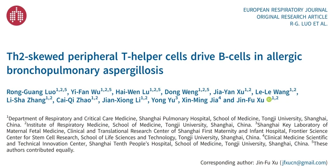 變應(yīng)性支氣管肺曲霉病(allergic bronchopulmonary aspergillosis,簡(jiǎn)稱ABPA)常存在于支氣管哮喘及支氣管擴(kuò)張癥患者中。醫(yī)學(xué)院、附屬上海市肺科醫(yī)院徐金富團(tuán)隊(duì)經(jīng)對(duì)ABPA患者多年的跟蹤隨訪和探索,發(fā)現(xiàn)一群外周輔助性T細(xì)胞在ABPA的發(fā)生和加重中起關(guān)鍵作用,該群細(xì)胞可能成為ABPA未來(lái)精準(zhǔn)治療的靶點(diǎn)。該研究成果發(fā)表于《歐洲呼吸雜志》(European Respiratory Journal),并被同期配發(fā)述評(píng)。