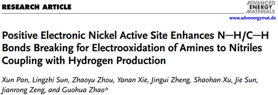 氫能有望成為化石燃料的理想替代品,但是陽(yáng)極處緩慢的析氧反應(yīng)極大地抑制了電解水制氫的效率。化學(xué)科學(xué)與工程學(xué)院趙國(guó)華團(tuán)隊(duì)發(fā)展了一種促進(jìn)N-H/C-H鍵斷裂以實(shí)現(xiàn)高效電解水制氫的方法,實(shí)現(xiàn)了電氧化胺到腈的完全轉(zhuǎn)化并達(dá)到99%以上的選擇性,達(dá)到資源和能源的雙重利用。相關(guān)研究成果發(fā)表于《先進(jìn)能源材料》(Advanced Energy Materials)。