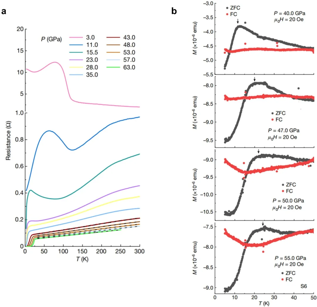 復(fù)旦大學(xué)教授趙俊、中國科學(xué)院物理研究所研究員郭建剛、北京高壓科學(xué)研究中心研究員曾橋石,為論文的共同通訊作者。復(fù)旦大學(xué)物理學(xué)系博士后朱英浩、北京高壓科學(xué)研究中心博士生彭帝、復(fù)旦大學(xué)物理系張恩康、中國海洋大學(xué)泮丙營副教授、中國科學(xué)院物理研究所陳旭工程師為共同第一作者。該研究得到了國家基金委、科技部、上海市科學(xué)技術(shù)委員會、北京市自然科學(xué)基金、山東省自然科學(xué)基金的支持。該研究的部分?jǐn)?shù)據(jù)在中國科學(xué)院綜合極端條件實(shí)驗(yàn)裝置、美國橡樹嶺國家實(shí)驗(yàn)室和上海同步輻射光源等大科學(xué)平臺采集。