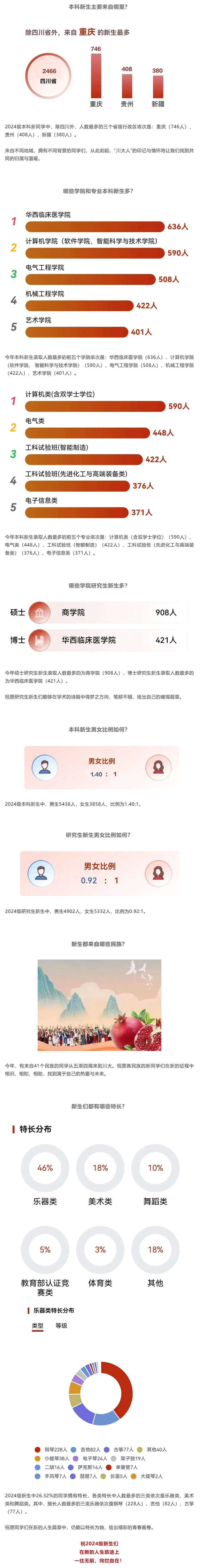 近日,四川大學官微公布2024級新生大數(shù)據(jù)。