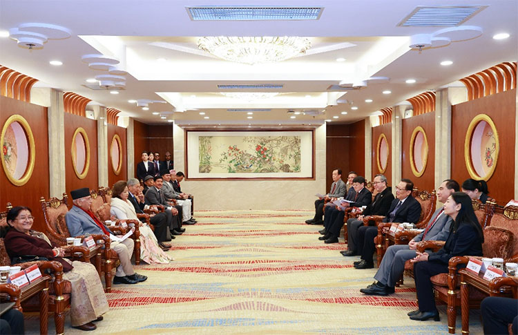 尼泊爾總理夫人拉迪卡·沙基亞(Mrs. Radhika Shakya)、外交部長阿祖·拉納·德烏帕(Hon. Dr. Arzu Rana Deuba)、尼泊爾駐華大使里希納·普拉薩德·奧利(H.E. Mr. Krishna Prasad Oli)以及尼泊爾訪華代表團(tuán)成員一同來訪。中華人民共和國駐尼泊爾特命全權(quán)大使陳松陪同來訪。