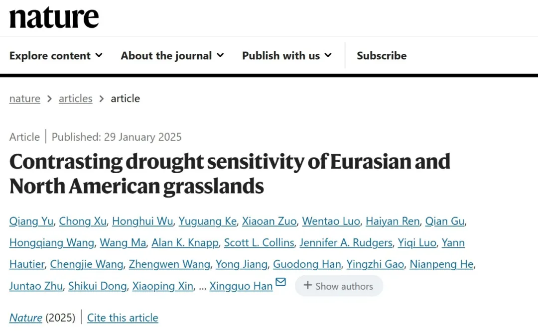 據(jù)北京林業(yè)大學(xué)官微消息,近日,北京林業(yè)大學(xué)庾強(qiáng)教授聯(lián)合美國科羅拉多州立大學(xué)等3個(gè)國家19家單位的科研人員在Nature發(fā)表最新科研成果,發(fā)現(xiàn)了中美草原生態(tài)系統(tǒng)截然不同的干旱敏感性,并揭示了響應(yīng)機(jī)制。該研究對預(yù)測未來氣候變化背景下草原生態(tài)系統(tǒng)對長期干旱的響應(yīng)具有重要的指示作用,為應(yīng)對氣候變化和草原生態(tài)系統(tǒng)適應(yīng)性管理提供了理論支撐。