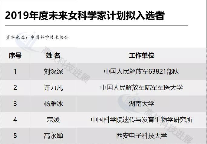 2019年度“未來女科學家計劃”擬入選者名單中,中國人民解放軍陸軍軍醫(yī)大學、湖南大學、西安電子科技大學各有1人入選,他們分別是許力凡、楊雁冰、高永嬋。