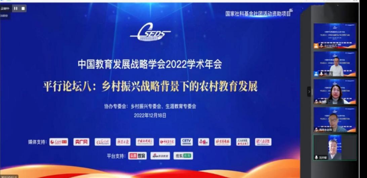 中國教育發(fā)展戰(zhàn)略學(xué)會(huì)2022年學(xué)術(shù)年會(huì)——鄉(xiāng)村振興戰(zhàn)略背景下的農(nóng)村教育發(fā)展分論壇于12月18日在線上開幕。本次會(huì)議以“學(xué)習(xí)貫徹二十大精神,深入探討鄉(xiāng)村振興背景下的農(nóng)村教育發(fā)展”為主題。聚焦多產(chǎn)業(yè)合作,打開思路,開拓新的教育模式,建立多點(diǎn)共建的發(fā)展戰(zhàn)略,推動(dòng)鄉(xiāng)村教育的進(jìn)一步深入。