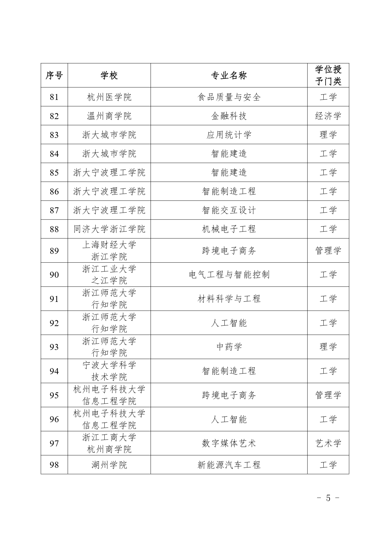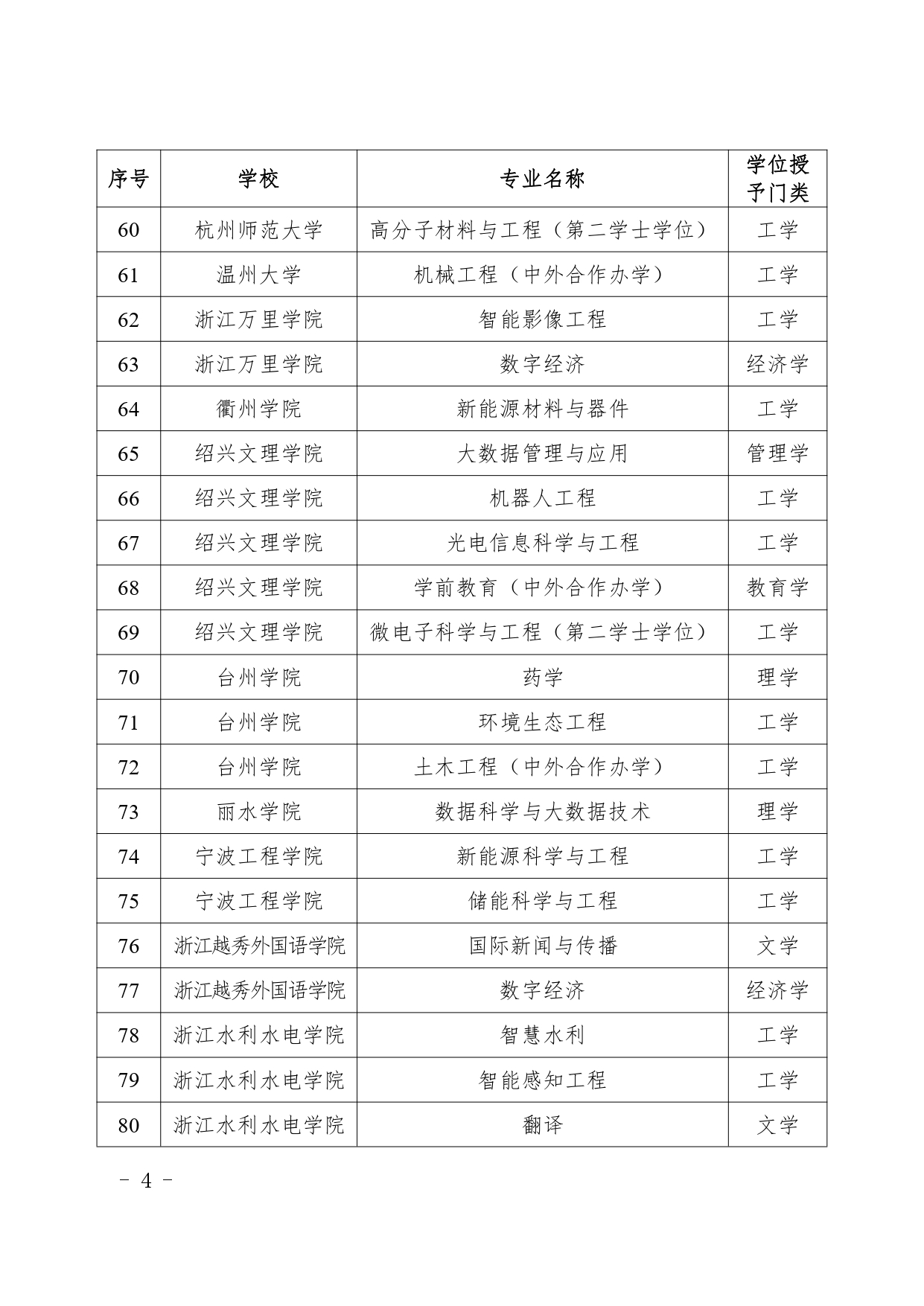 4月3日,浙江省學(xué)位委員會辦公室公示2024年新增學(xué)士學(xué)位授權(quán)專業(yè)評審結(jié)果。根據(jù)《浙江省學(xué)位委員會關(guān)于做好學(xué)士學(xué)位授權(quán)審核工作的通知》(浙學(xué)位〔2022〕4號)要求,經(jīng)學(xué)校申報(bào)、專家評審、省學(xué)位委員會審議,新增浙江大學(xué)智能體育工程等115個(gè)專業(yè)(含第二學(xué)士學(xué)位專業(yè)32個(gè))為學(xué)士學(xué)位授權(quán)專業(yè),現(xiàn)予公示。