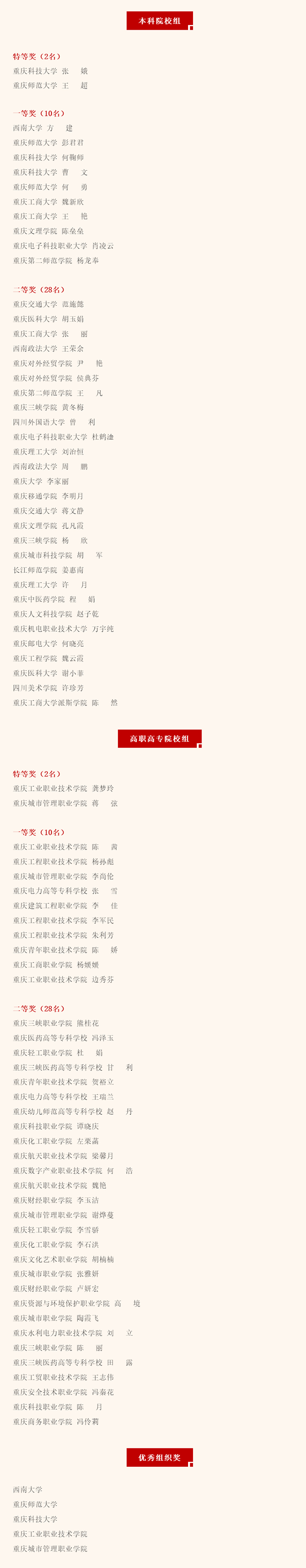 據(jù)悉,全市高校思政課教師教學(xué)技能競賽,重慶市已連續(xù)舉辦12年,此項賽事已成為全市高校思政課教師比拼實力的擂臺、增強素質(zhì)的平臺和展示風(fēng)采的舞臺。此次競賽,經(jīng)過校級初賽選拔,共有264名教師參加復(fù)賽,最終80名教師晉級決賽。決賽分為本科和高職高專兩個組別,包含教學(xué)設(shè)計和現(xiàn)場授課兩個環(huán)節(jié)。參賽教師按照隨機抽取的章節(jié)題目,緊緊圍繞課程目標(biāo),科學(xué)設(shè)計教學(xué)內(nèi)容,進行8分鐘的現(xiàn)場授課。