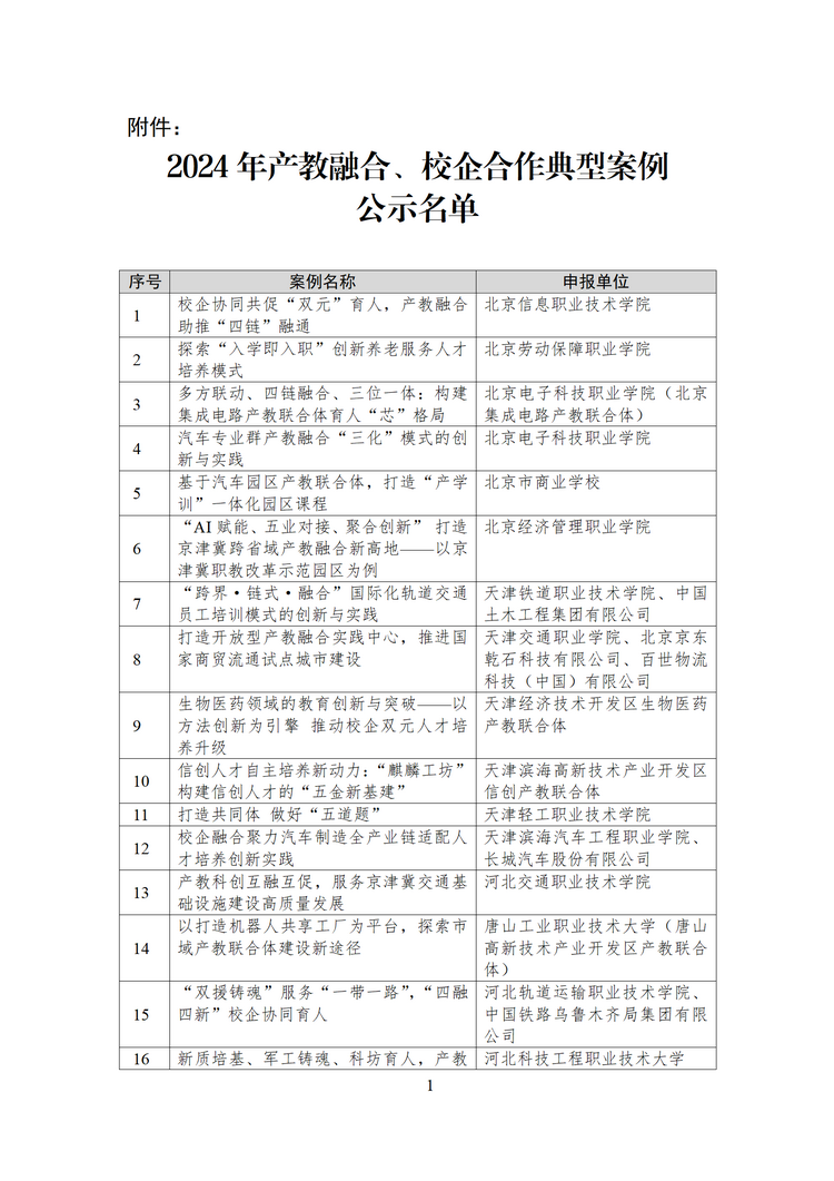 近日,教育部官網(wǎng)發(fā)布《關于2024年產(chǎn)教融合、校企合作典型案例遴選結果的公示》。