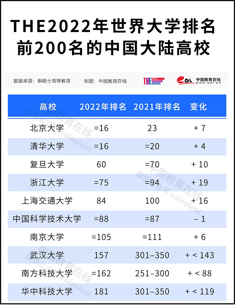 盡管受到全球疫情的影響,但中國(guó)大陸高校在泰晤士高等教育世界大學(xué)排名中繼續(xù)提升。讓我們一起見(jiàn)證后疫情時(shí)代世界的變化,見(jiàn)證中國(guó)大陸能否挑戰(zhàn)美國(guó)和英國(guó)在全球 10 強(qiáng)中的長(zhǎng)期領(lǐng)先地位,這將是一件非常有趣的事情。