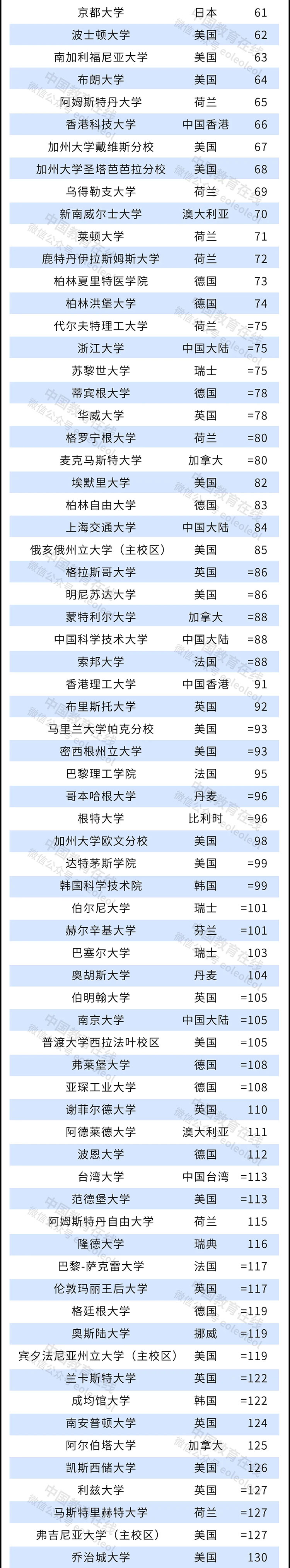 175所大學(xué)首次上榜,剛剛合并的法國(guó)巴黎理工學(xué)院(排名第 95 名)在首次上榜的大學(xué)中排名最高;