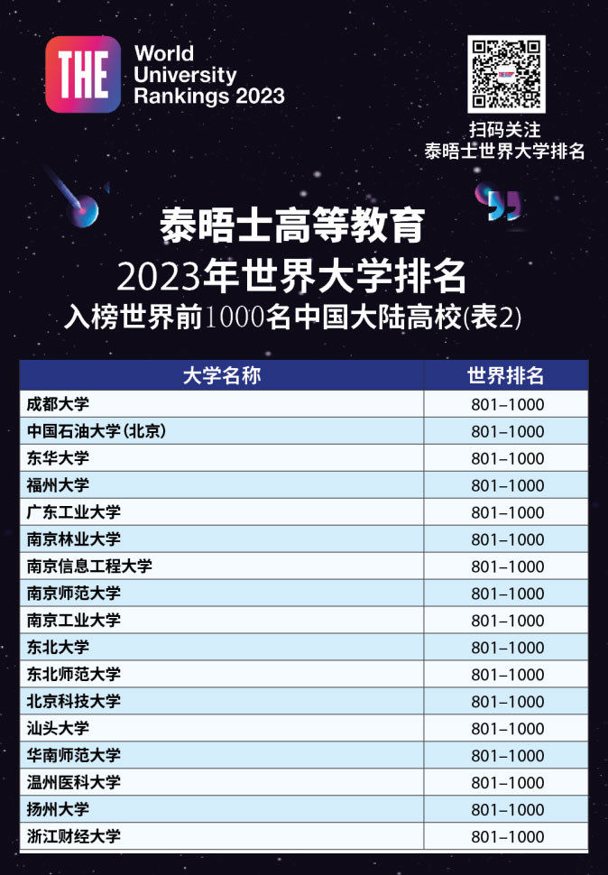 2023年共有13所中國大陸的高校首次上榜,其中長沙理工大學(第501-600名)為今年中國大陸排名最高的新上榜高校。