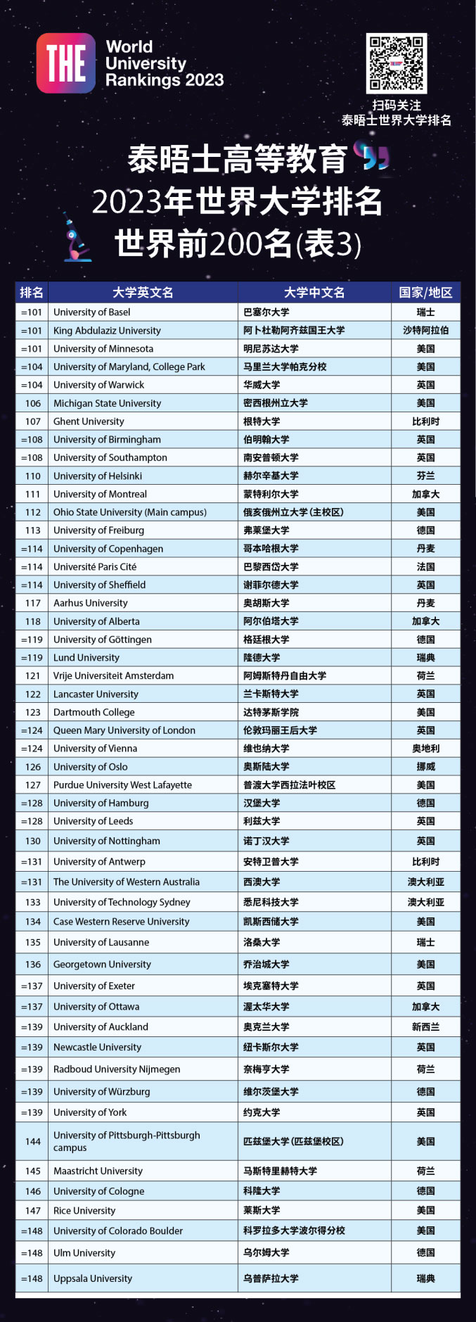 2023年的排名中共有來自104個國家/地區(qū)的1799所大學上榜,較去年增加了137所,創(chuàng)歷史新高。