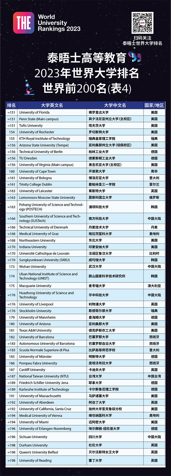 中國大陸再創(chuàng)歷史紀錄,共有11所高校躋身世界排名前200名。
