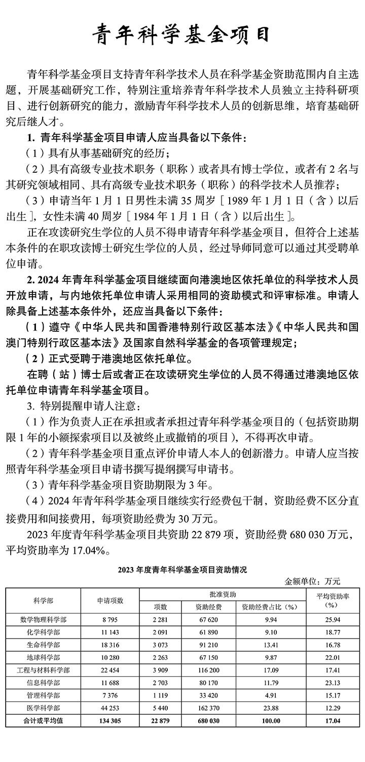 1月11日,國(guó)家自然科學(xué)基金委員會(huì)正式發(fā)布《2024年度國(guó)家自然科學(xué)基金項(xiàng)目指南》。