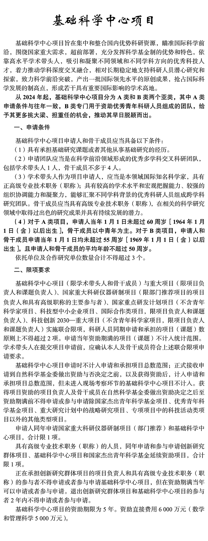 《2024年度國(guó)家自然科學(xué)基金項(xiàng)目指南》申請(qǐng)規(guī)定