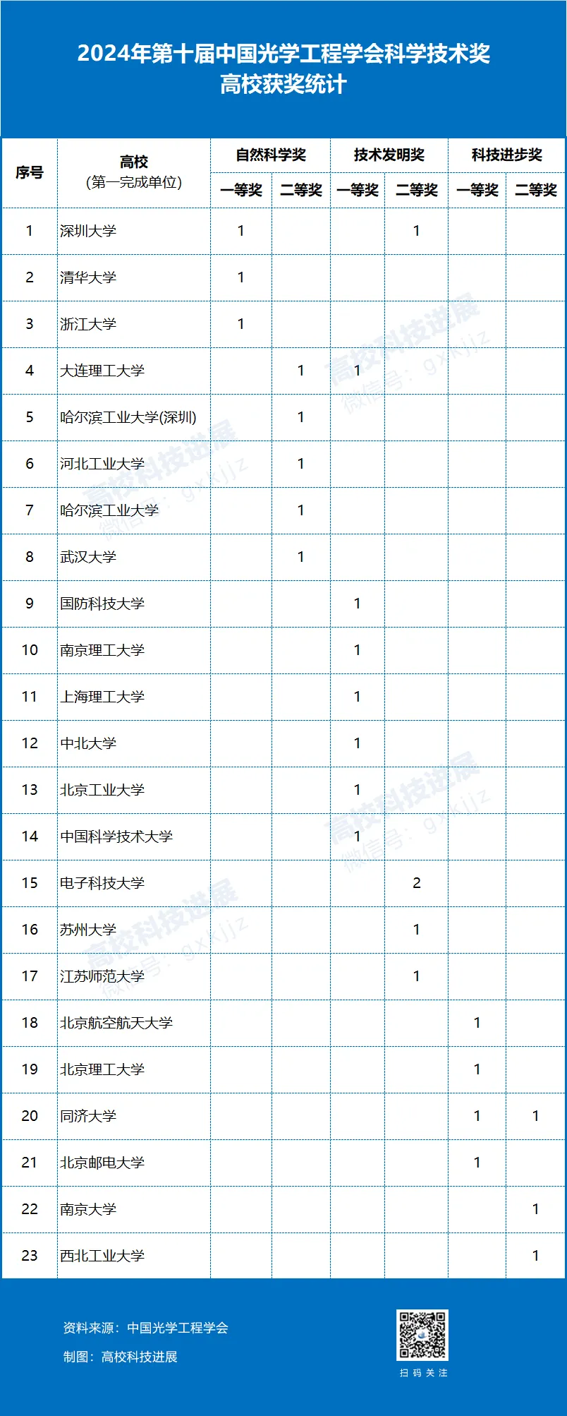 自然科學(xué)獎(jiǎng)中,清華大學(xué)、浙江大學(xué)、深圳大學(xué)各有1項(xiàng)斬獲一等獎(jiǎng);哈爾濱工業(yè)大學(xué)(深圳)、河北工業(yè)大學(xué)、哈爾濱工業(yè)大學(xué)、武漢大學(xué)、大連理工大學(xué)各有1項(xiàng)獲得二等獎(jiǎng)。