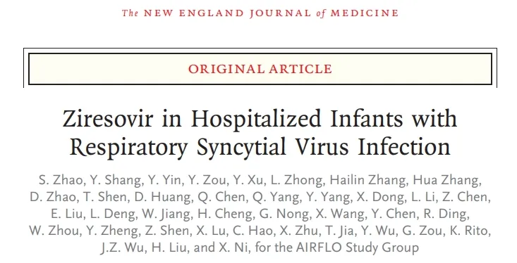 近日,華西二院劉瀚旻教授聯(lián)合多位專家在The New England Journal of Medicine上發(fā)表題目為Ziresovir in Hospitalized Infants with Respiratory Syncytial Virus Infection的研究成果。此研究是NEJM發(fā)表的首個(gè)中國自主研發(fā)的兒童創(chuàng)新藥臨床研究,也是全球首個(gè)治療RSV病毒感染靶向藥的III期臨床試驗(yàn)結(jié)果。首都醫(yī)科大學(xué)附屬北京兒童醫(yī)院趙順英教授為文章第一作者,倪鑫教授(末位通訊)、華西二院劉瀚旻教授和愛科百發(fā)鄔征博士為共同通訊作者。