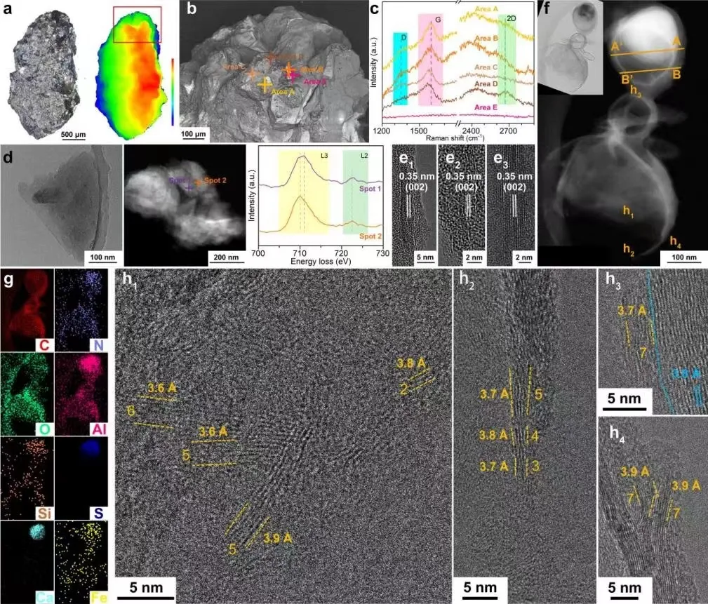 圖1 CE-5月壤樣品中天然石墨烯的先進電子顯微結(jié)構(gòu)表征和譜學分析