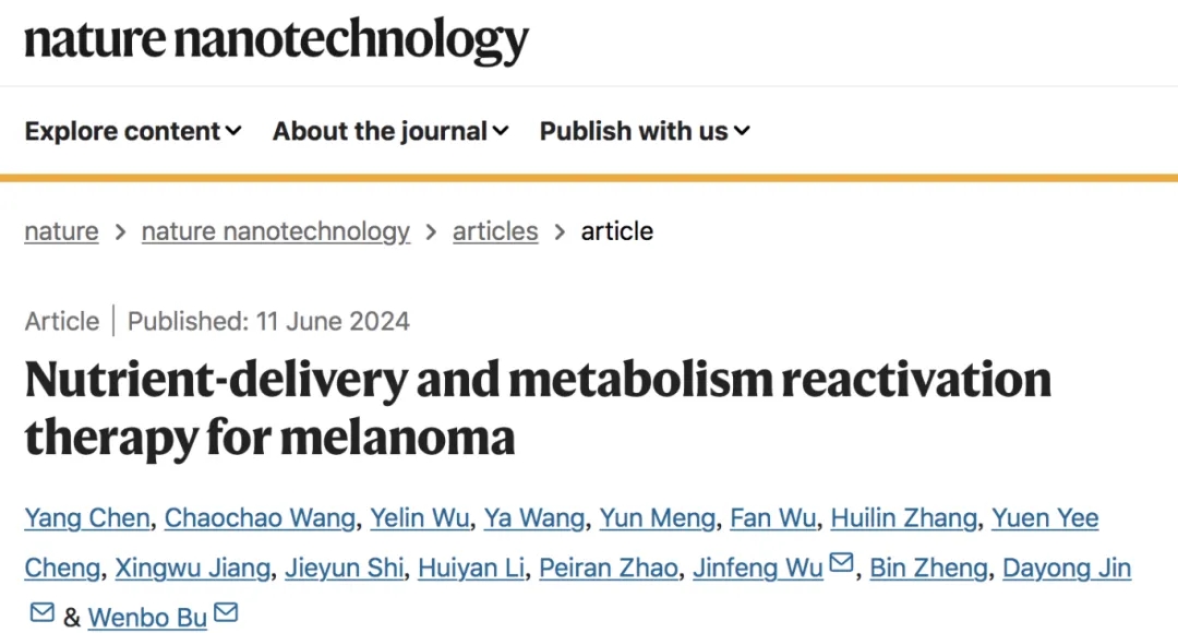 不受控的快速增殖是癌細(xì)胞區(qū)別于正常細(xì)胞的關(guān)鍵特征。生命科學(xué)與技術(shù)學(xué)院陳楊創(chuàng)新性地提出了基于營(yíng)養(yǎng)素納米化技術(shù)的腫瘤代謝重激活新策略,并以黑色素瘤為例揭示通過(guò)納米營(yíng)養(yǎng)素激活癌細(xì)胞被抑制的代謝通路,同樣展現(xiàn)出令人振奮的抗癌效果,有助于臨床的聯(lián)合治療,從而為腫瘤治療提供全新范式。該研究成果發(fā)表于《自然·納米技術(shù)》(Nature Nanotechnology)。