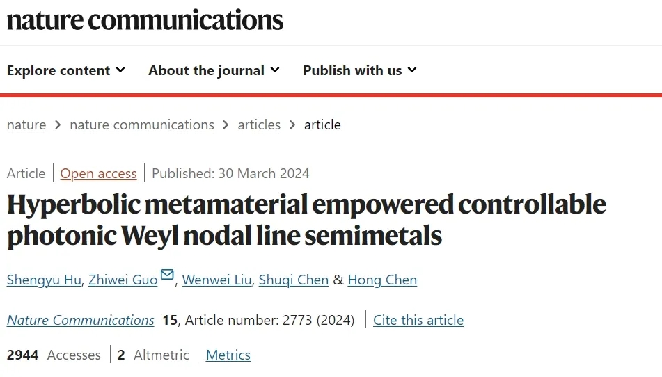 隨著拓?fù)淠軒Ю碚摰陌l(fā)展,存在帶隙的拓?fù)浣^緣體相引起了廣泛關(guān)注,推動(dòng)了關(guān)于無(wú)帶隙的拓?fù)浒虢饘傧嗟男乱惠喬剿鳌N锢砜茖W(xué)與工程學(xué)院陳鴻課題組提出含雙曲超構(gòu)材料的一維光子晶體可以提供一個(gè)靈活的多功能平臺(tái)以實(shí)現(xiàn)Weyl節(jié)線半金屬(WNLS)的動(dòng)力學(xué)演化和拓?fù)湫哉{(diào)控。相關(guān)研究成果在線發(fā)表于《自然·通訊》(Nature Communications)。