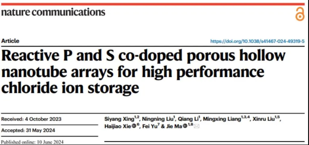 可持續(xù)清潔能源、水資源短缺和工業(yè)廢水處理需求促使了氯離子儲(chǔ)存分離技術(shù)的研究。環(huán)境科學(xué)與工程學(xué)院馬杰團(tuán)隊(duì)通過(guò)摻雜一步實(shí)現(xiàn)高位點(diǎn)反應(yīng)活性及高速離子擴(kuò)散通道的建立,揭示了過(guò)渡金屬磷硫化物在電化學(xué)捕氯中強(qiáng)大的應(yīng)用前景,也為脫氯陽(yáng)極的設(shè)計(jì)提供普適性的策略和方法。該研究成果發(fā)表于《自然·通訊》(Nature Communications)。