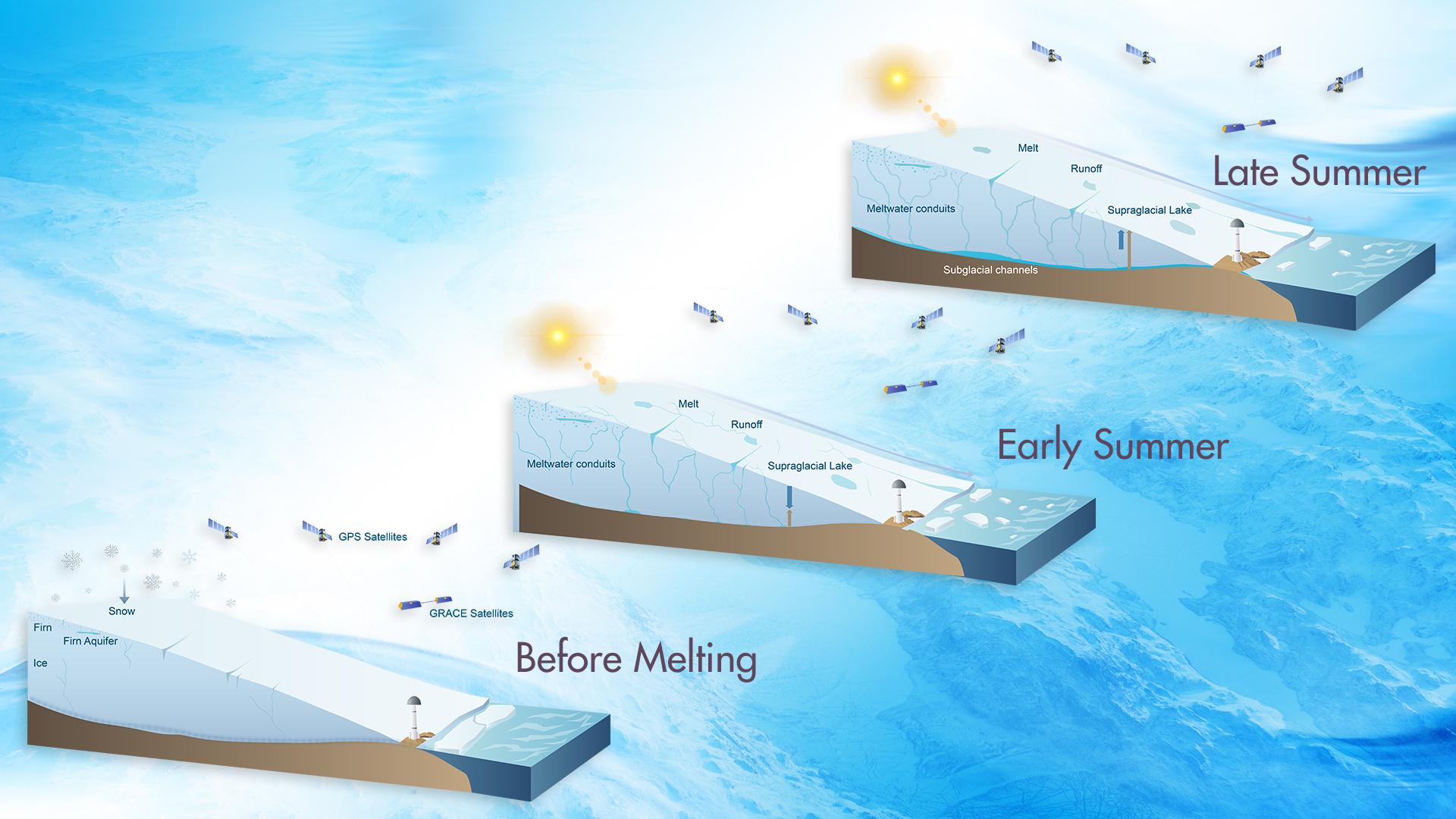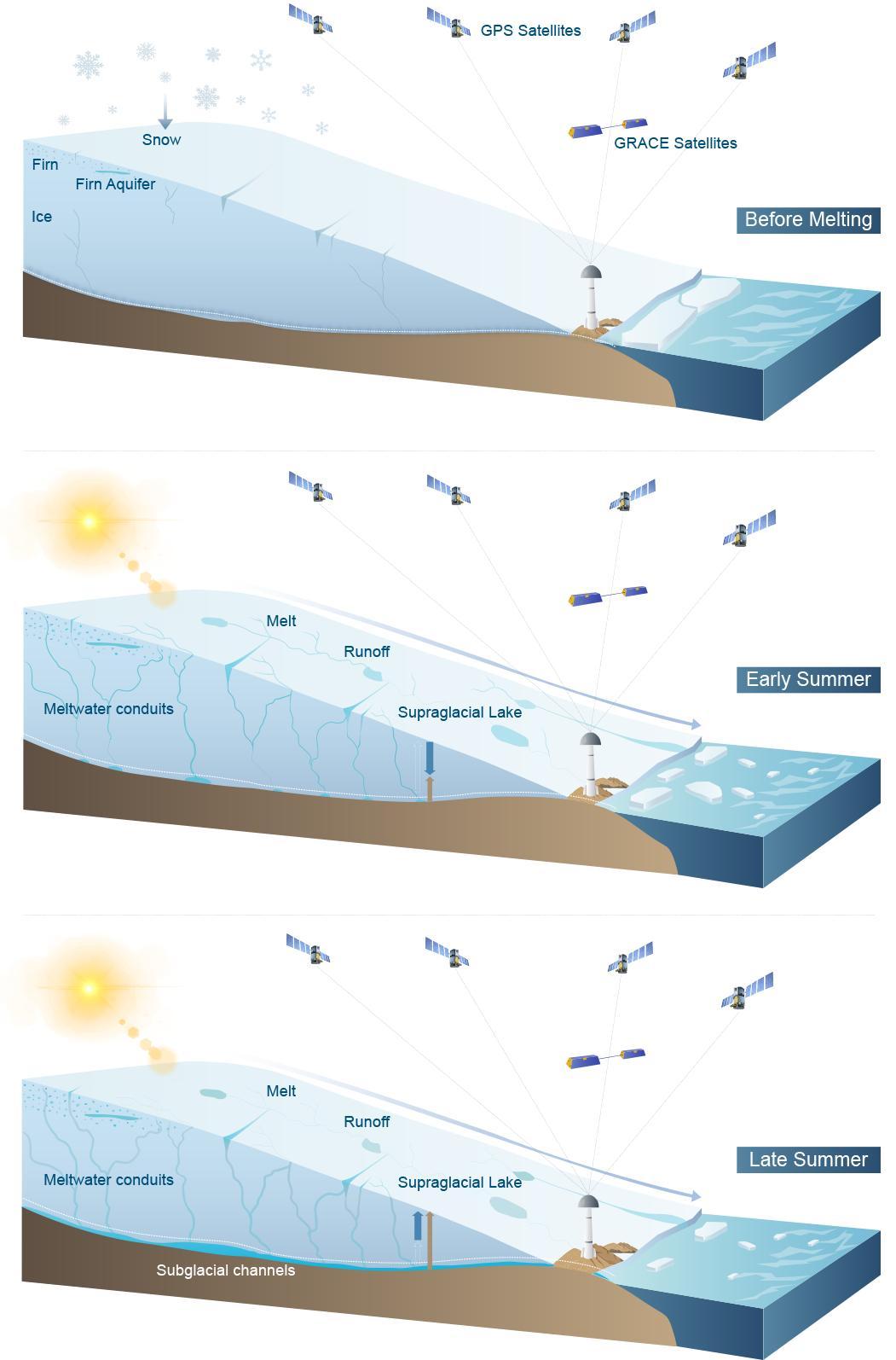 該發(fā)現(xiàn)為研究融水在冰川內(nèi)部和底部的演化提供了前所未有的視角,有利于提高冰川模型的可靠性,降低由全球變暖導(dǎo)致的未來海平面上升的預(yù)測誤差。