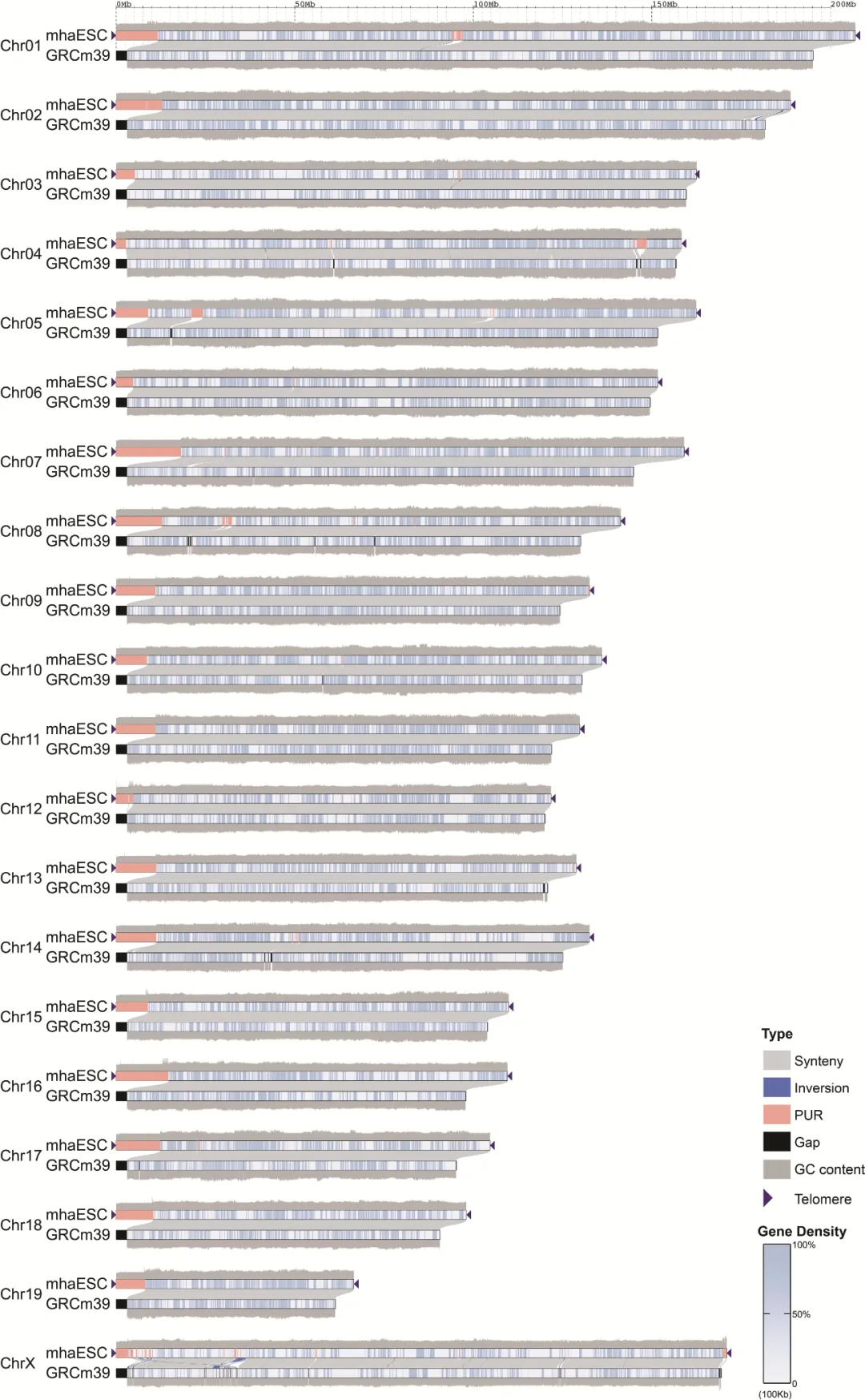 mhaESC基因組與先前參考基因組的共線性比對(duì)結(jié)果